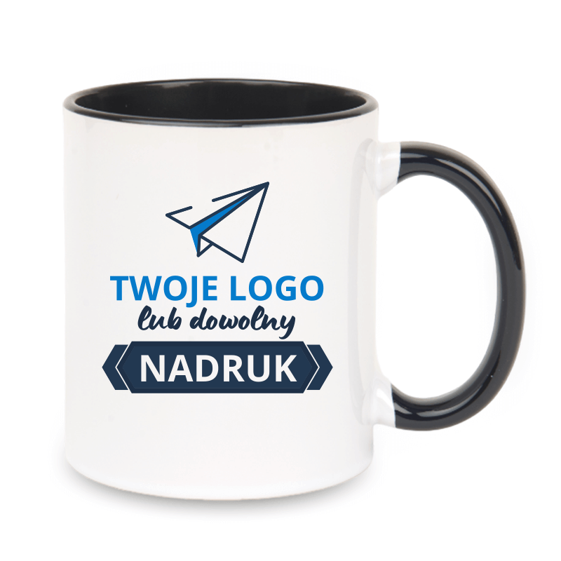 Kubek z czarnym wnętrzem i uszkiem – z nadrukiem