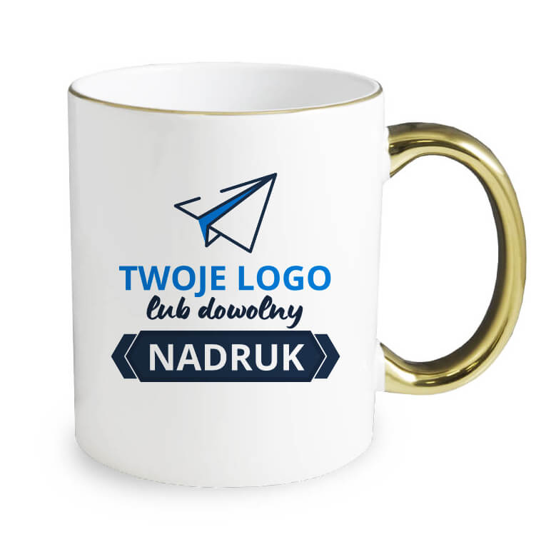 Kubek ze złotym rantem i uszkiem – z nadrukiem